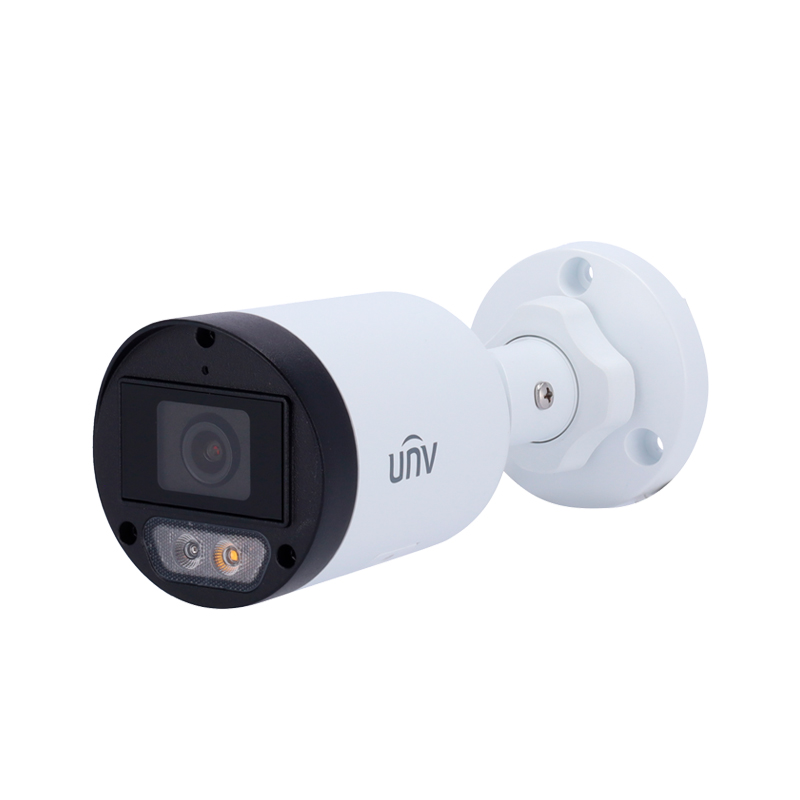 Telecamera Bullet IP Uniview – Gamma Easy, 4 MP | Ottica 2.8 mm | microSD 128 GB, IR 30 m | Luce bianca 30 m | WDR 120 dB, Color Hunter | Dual Light, IP67. Microfono. Alimentazione: DC 12 V / 2.8 W, PoE IEEE802.3af. Dimensioni: 162 × 67 × 67 mm. Compatibile con: UV-TR-JB05-B-IN junction box; UV-TR-UP06-C-IN staffa da palo; UV-TR-UC08-C-BLACK staffa ad angolo.
