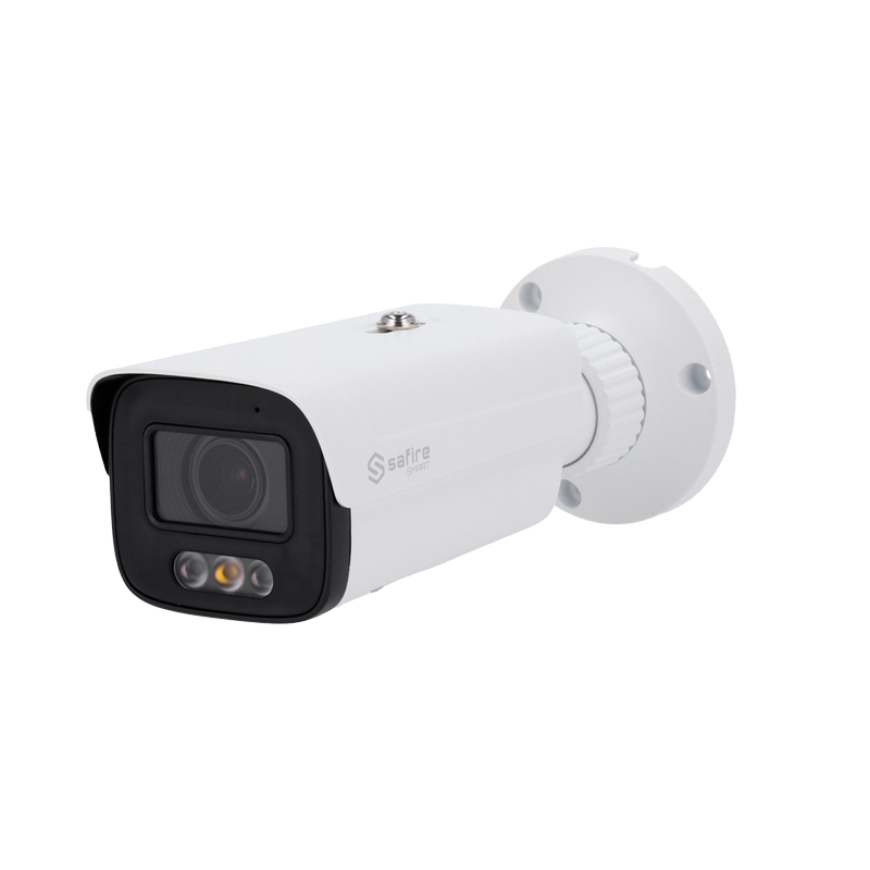 Telecamera Bullet IP SAFIRE SMART, gamma E1, 4 Mp (2566×1440). Lente Motorizzata 2.8~12mm, Audio 1 ingresso, IR 50m. TrueSense, intelligenza artificiale per la classificazione di persone e veicoli su: Intrusione di area, Attraversamento linea, regione di ingresso, regione di uscita. Altri eventi intelligenti: oggetto abbandonato, oggetto rimosso. Scheda microSD fino a 256 GB. Impermeabilità IP67. Alimentazione: DC 12 V / 666 mA / 8 W max. /PoE IEEE802.3af. Dimensioni: 80,30 (H) x 80,50 (L) x 217,80 (P) mm. Compatibile con: SF-JBOX-0104, SF-JBOX-0301, SF-JBOX-0103 junction box.