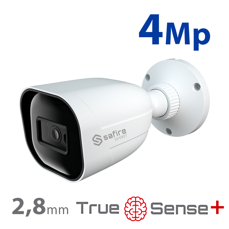 Bullet IP Safire SAFIRE SMART gamma I1, 4 Mp 2,8 mm. Audio 1 Ingresso. IR 30m. TrueSense+: classificazione di persone, veicoli e veicoli non motorizzati, rilevamento del volto e acquisizione del volto. Conteggio di persone e veicoli. Identificazione persone e veicoli. Waterproof IP67. Alimentazione: DC 12 V / 702 mA / 8.5 W máx. / PoE IEEE802.3af. Dimensioni: 74.5 (H) x 74.5 (L) x 167.50 (P) mm. Compatibile con: SF-JBOX-0104, SF-JBOX-0301, SF-JBOX-0103 junction box.