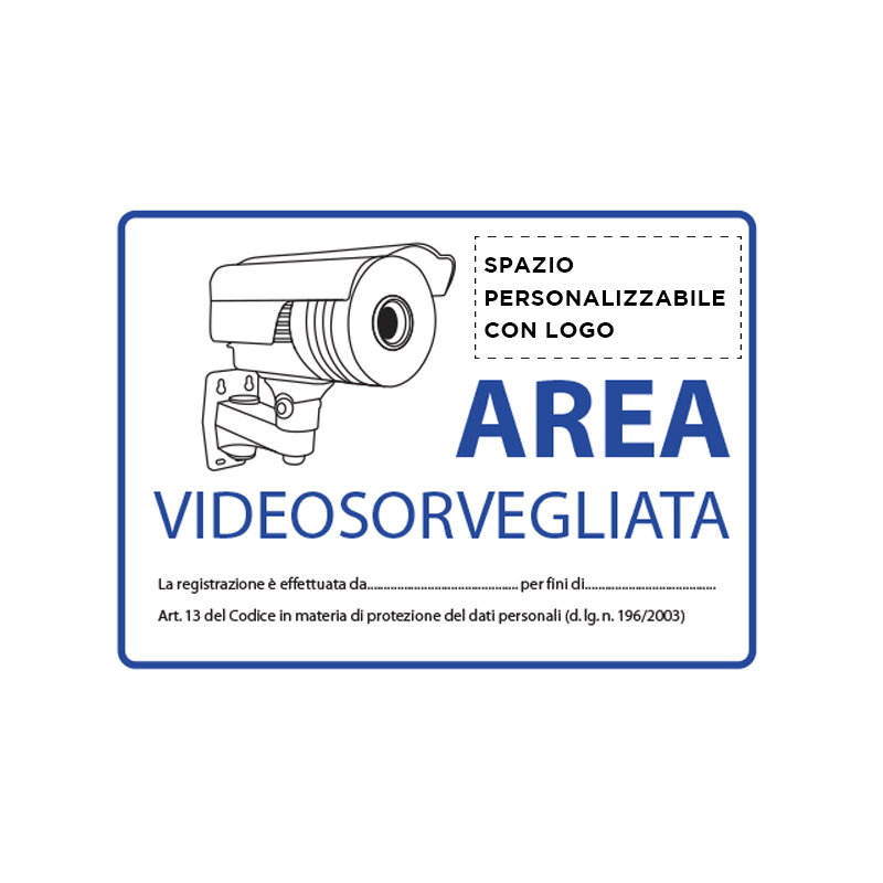 Cartello in plastica Area Videosorvegliata 150 x 210 mm con stampa personalizzata
