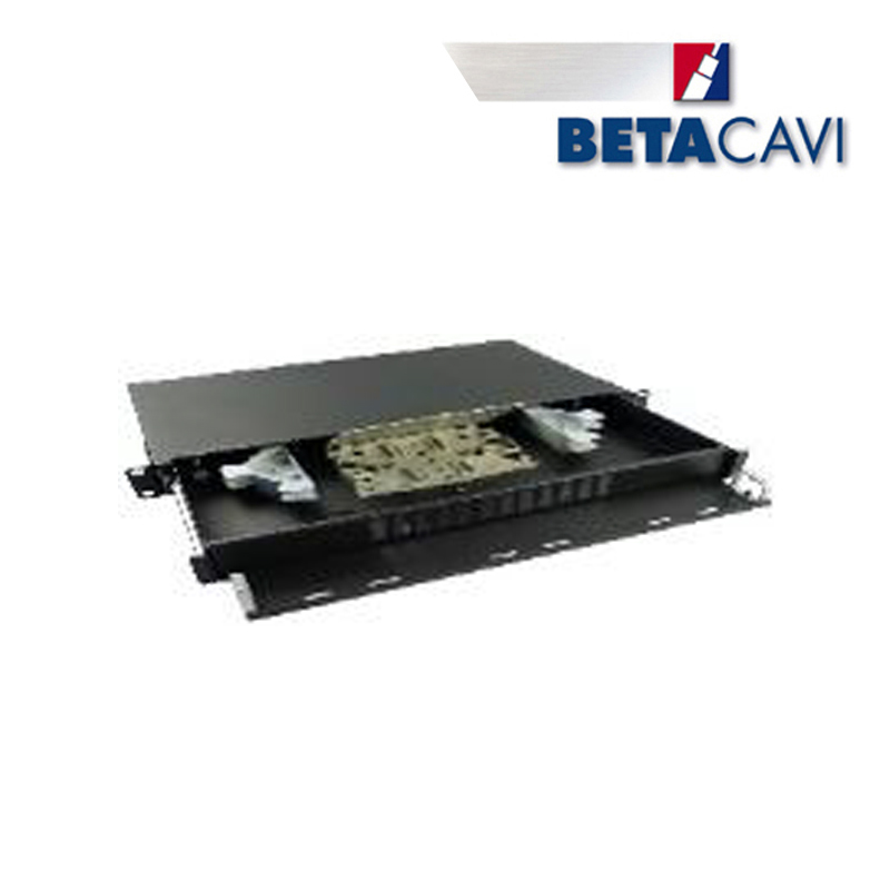 Cassetto ottico 12 core per bussole duplex. Cassetto Ottico (comprensivi di carpenteria, avvolgi cavo a ragno, vassoio porta giunti) utilizzato per la terminazione di cavi in fibra ottica all’interno di armadi rack con montanti regolabili.