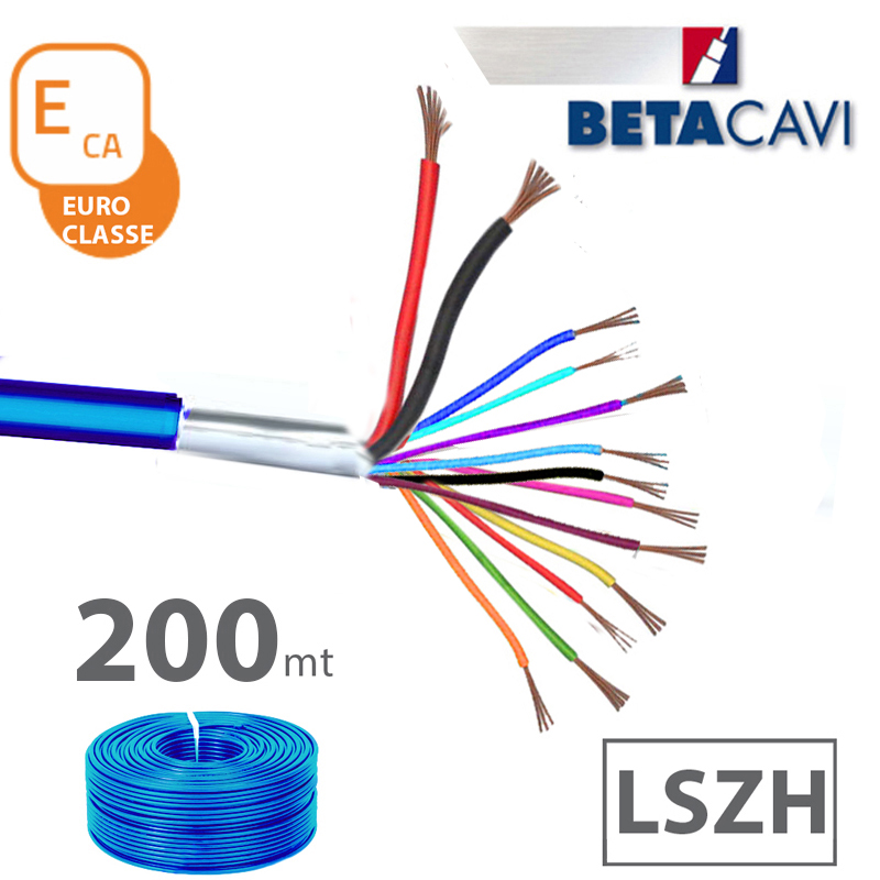 cavo all. LSZH 2×0,50+12×0,22+T+S CEI-UNEL 36762 C-4 direttiva CPR classificato in EUROCLASSE ECA. Matassa da 200m BLU