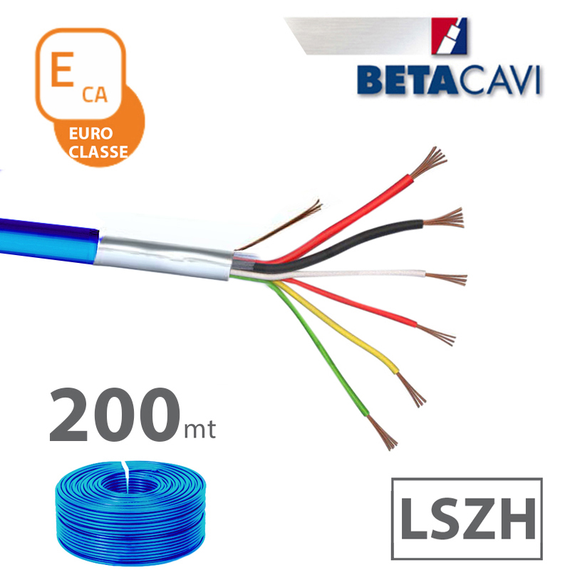 cavo allarme LSZH 2×0,50+4×0,22+T+S CEI-UNEL 36762 C-4 direttiva CPR classificato in EUROCLASSE ECA. Matassa 200m BLU