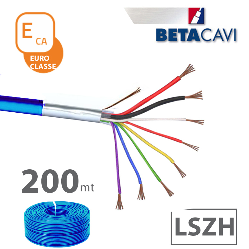 cavo allarme LSZH 2×0,50+6×0,22+T+S CEI-UNEL 36762 C-4 direttiva CPR classificato in EUROCLASSE ECA. Bobina da 500m BLU