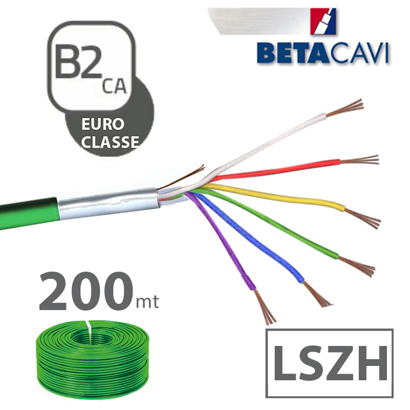 cavo all. LSZH 2×0,75+4×0,22+T+S CEI-UNEL 36762-C4 direttiva CPR classificato in EUROCLASSE B2. Matassa 200m verde