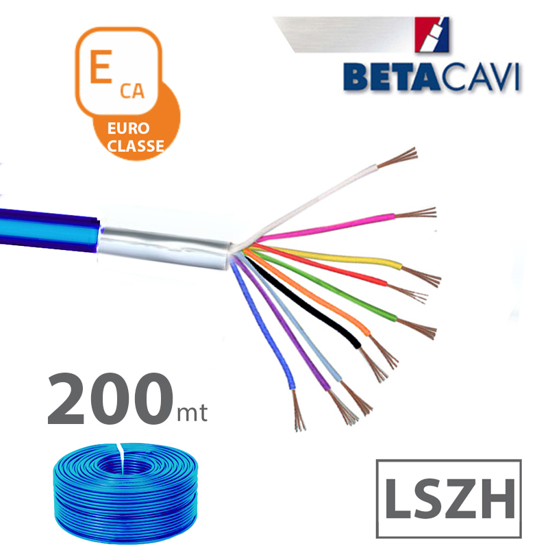 cavo allarme LSZH 10×0,22+T+S CEI-UNEL 36762 C-4 direttiva CPR classificato in EUROCLASSE ECA. Matassa da 200m BLU