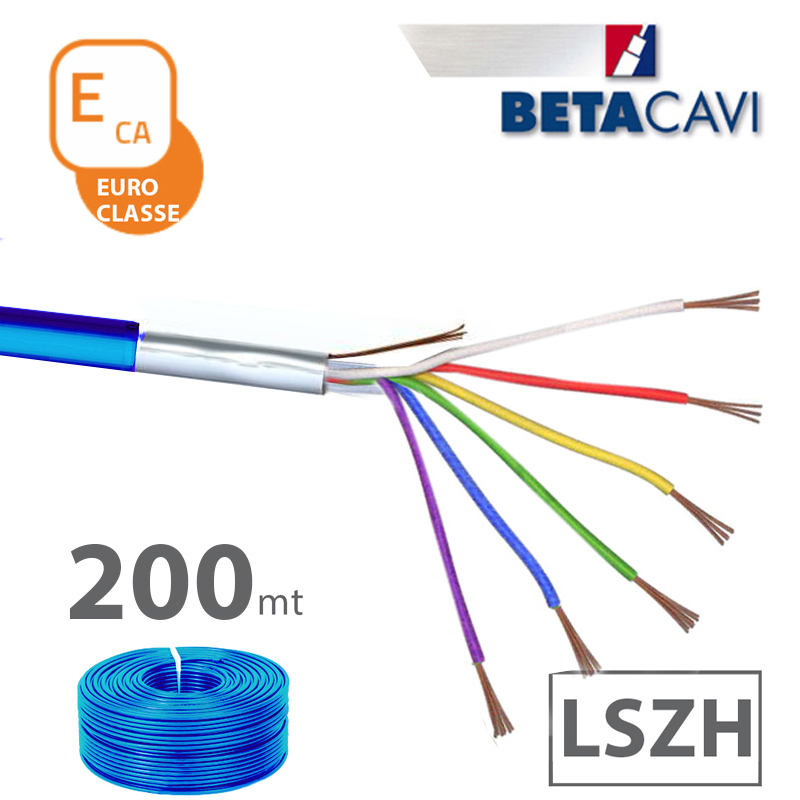 cavo allarme LSZH 6×0,22+T+S CEI-UNEL 36762 C-4 direttiva CPR classificato in EUROCLASSE ECA. Matassa da 200m BLU