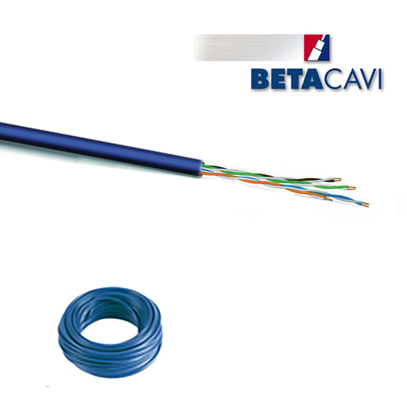 Cavo UTP CAT56 ECA. Larghezza di banda fino a 200MHz. Guaina in DURAFLAM LSZH colore BLU. Diametro esterno: 7,30mm. Matassa 100m