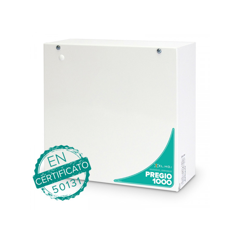 PREGIO1000BM è una centrale “green”, che abbraccia e mette in primo piano aspetti e tematiche quanto mai attuali come la riduzione dei consumi e i conseguenti risparmi economici e la tutela ambientale. PREGIO1000BM è certificata IMQ-Allarme EN 50131-1, EN 50131-3, EN 50131-6, EN 50131-10, EN 50136-2 grado 3, classe ambientale II. Dimensioni e peso: L316 x H305 x P143mm, 3,4 kg. Assorbimento: 15 mA a riposo. Alimentazione: Da rete 110-240Vca 50Hz, alimentatore 2,4 A.