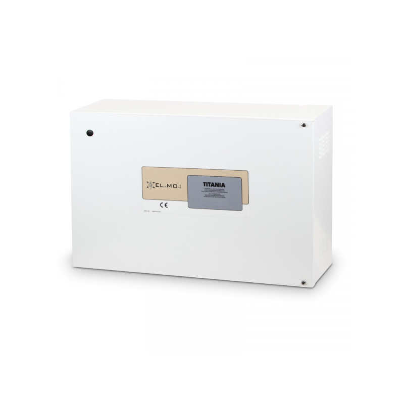 TITANIAPLUS è una centrale antintrusione pensata per installazioni in impianti di sicurezza di tipo postale, bancario, commerciale o industriale che offre 16 ingressi a triplo bilanciamento espandibili a 1024. Si integra perfettamente nell’ambito della building automation grazie alla metodica delle logiche programmabili. È basata sul sistema operativo Linux® Embedded ad avvio e spegnimento rapido e su un hardware flessibile e espandibile che garantisce una continua evoluzione del sistema-edificio, permettendo sempre espansioni future. La centrale integra 2 linee seriali RS-485 per il collegamento di concentratori e organi di comando, 1 interfaccia seriale RS232 per programmazione da PC o connessione CEI 79-5, 79-6, 79-7 (CEI-ABI), 2 porte LAN per collegamento a sistemi di centralizzazione e/o di supervisione. TITANIAPLUS è certificata IMQ-Allarme EN50131-3 grado 3 classe ambientale II ed EN50131-6. Dimensione e peso: L525 x H380 x P280mm, peso 12Kg. Corrente massima assorbita dalla rete (230Vac) 0,58 A. Assorbimento scheda base 250 mA max. Alimentatore 7 A. Alimentazione: 230Vca, 50Hz.