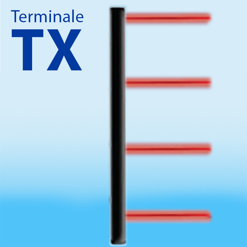 Colonna IR POLITEC modello SANDOR PLUS MODELLO TERMINALE con tecnologia SMA. Altezza 4mt. 4TX. Portata max in interno 200mt; portata max in esterno 100mt. Sincronizzazione filare. Tecnologia SMA (single man aligment) consente l’alineamento con un solo operatore in quanto i leds ad altissima luminosità ed il buzzer su ciascuna ottica, permettono il raggiungimento del massimo valore di allineamento senza uso di strumentazione supplementare, viene attivato semplicemente attraverso un pulsante posto su ciascuna ottica. IR 950nm. Funzionamento impostabile a raggi paralleli o incrociati. Distanza di lavoro in esterno 100m a raggi paralleli, da 4m a 8m se incrociati. Modalità di funzionamento selezionabile, da locale o da remoto, tra OR – AND RANDOM – AND 1°+2° RAGGIO. ANTISTRISCIAMENTO sul 1° fascio in basso. Uscite: relè per allarme, o.c. per disqualifica e accecamento raggi.RS485 per controllo da remoto ADEBUS. Temperatura di lavoro -25°…+70°C. Grado di protezione IP65. Alimentazione 10-30Vcc 120mA, 50W riscaldatori. Dimensioni 60x60x4000mm.