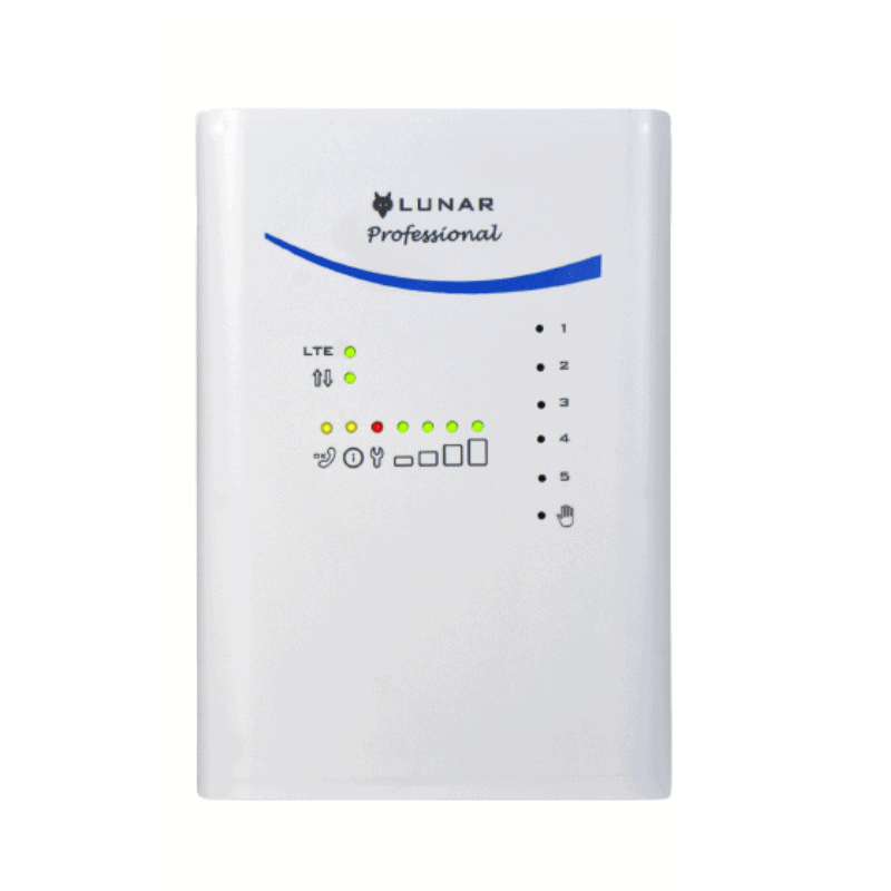 Combinatore telefonico 4G dedicato al settore professionale dove si realizzano impianti tecnologici con necessità di sorveglianza tecnica. Il dispositivo dispone di 5 ingressi, 6 uscite di cui 3 optoisolate con funzione di riconoscimento numero da associare alle uscite. Con connessione DATI automatica e gratuita al CLOUD, consente la programmazione e uso da remoto con la App WOLFLUNAR4G. Ha una funzione Anti-jammer che segnala con notifica o mail ma anche con chiamata vocale o sms da un combinatore associato nel momento in cui si verifica un guasto o una disconnessione della rete. Disponibili su Appstore e Google Play la App dedicata “WOLF LUNAR 4G” in connessione dati e “WOLF LUNAR” via Sms. Modulo telefonico: Quadri-band/UMTS , 2G/3G/4G. N. telefonici memorizzabili: fino a 100. Operatori compatibili: Tim/Vodafone/Wind3/Iliad. Antenna integrata. Dimensioni: 125x180x35 mm (l x h x p). Programmazione tramite PC con cavo interfaccia cod. W-USB-10, software disponibile sul sito wolfsafety.it. Ideale per B&B per la gestione fino a 6 varchi.
