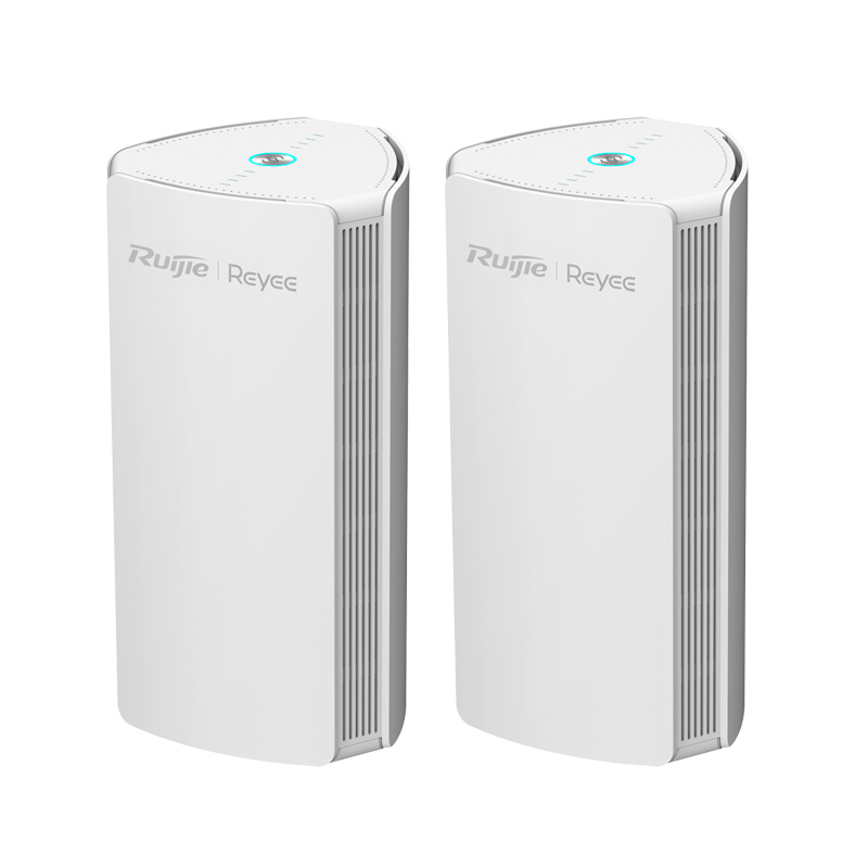 Confezione 2 Reyee Router Gigabit Mesh Wi-Fi 6 AX1800 3 Porte RJ45 10/100/1000 Mbps, 802.11ax 2×2 dual band 2.4 e 5 GHz. Gestione Remota tramite Cloud e App. Controllo Genitori, Rete Ospiti, Roaming. Progettato per creare una rete Mesh completa. Alimentazione: DC 12 V 1.5A 18W (adattatore incluso). Dimensioni: 180,6 (H) x 91,5 (L) ×91,5 (P) mm (dimensioni antenne escluse).