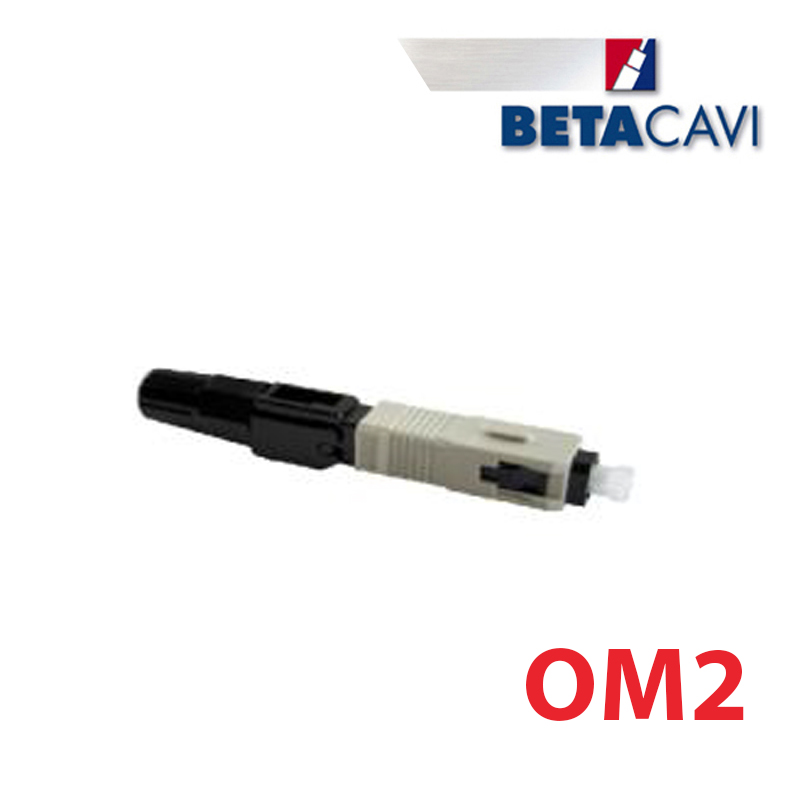 Connettore Multimodale OM2 prelappato SC/UPC per cavo da 3 mm. I connettori prelappati al loro interno contengono una fibra preinstallata in fabbrica che consente di eliminare le operazioni di lappatura e pulitura evitando l’utilizzo di resina in campo. Questa tipologia di connettori consente di raggiungere ottimi livelli di qualità, con una perdita di inserzione media di 0,2 dB, riducendo al minimo le problematiche che si incontrano nelle difficili condizioni di lavoro in campo.