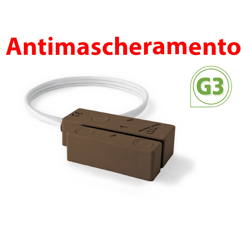 Contatto magnetico a vista ANTIMASCHERAMENTO MARRONE con cavo 2mt. Distanza di lavoro su ferro: 15mm, su altri materiali: 15mm. Brevetto MAGNASPHERE. Alta tolleranza, tamper passante. Installabile in esterno, IP67. Scocca in tecnopolimero rinforzato con fibra di vetro. Coprivite anti-manomissione. Distanziali contatto e magnete a corredo. Possibilità di uscita cavo dal retro del sensore. Certificazione EN50131-2-6 grado 3 classe IV. Dimensioni contatto LxHxP 64×22,5×22,5 e magnete LxHxP 51,5×14,3x22mm. Il prezzo si riferisce al singolo contatto. Venduto in confezione da 2 pezzi.
