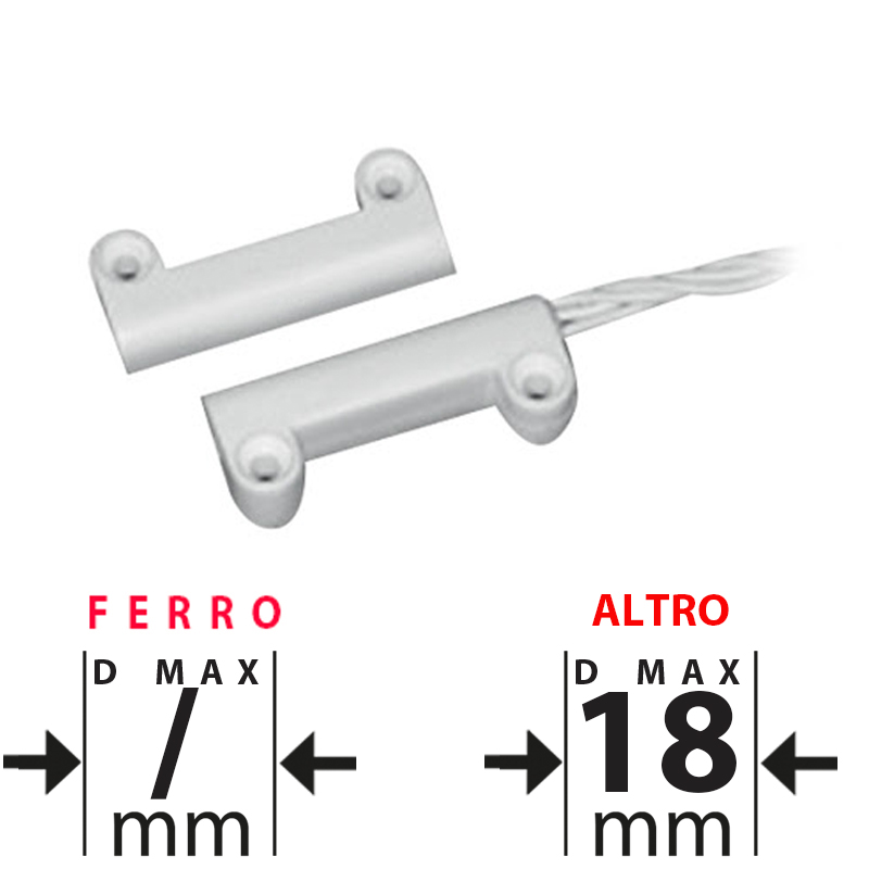 Contatto magnetico di media portata Distanza di lavoro 18mm. Montaggio a vista per l’installazione su porte e serramenti non ferro. Contenitore in ABS. Certificazione EN50131-2-6 grado 2 classe II. Temperatura di lavoro -25…+60°C. Dimensioni LxHxP 32x8x13mm. Prezzo riferito al singolo contatto. Venduto in confezione da 10pz.