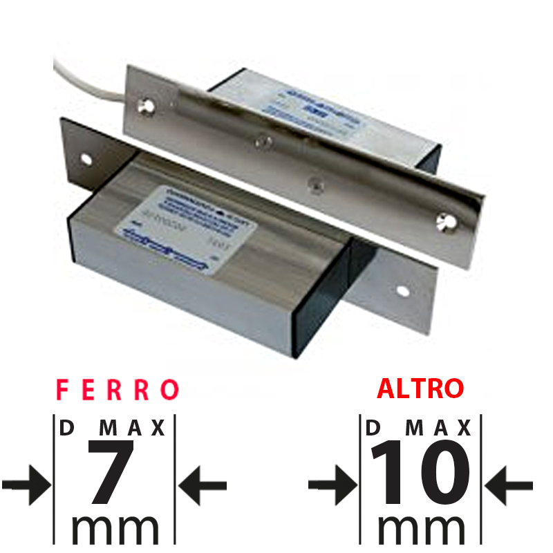 Contatto magnetico in alluminio anodizzarto IP40 per installazioni in interni ad incasso con elevato livello di sicurezza. Distanza massima di lavoro 10mm no ferro, 7mm ferro. I circuiti a triplo bilanciamento , in cui le diverse ampolle reed si agganciano ai campi magnetici generati da batterie di magneti, vengono sbilanciati all’avvicinarsi di un magnete esterno di effrazione attivando di conseguenza l’allarme. La protezione sui fili è garantita da un loop di tamper. Funzionamento con contatto reed uscita NC con magnete vicino. Connessione a filo. Lunghezza cavo 1,2mt. Dimensioni LxHxP 145x 36,5x 30mm
