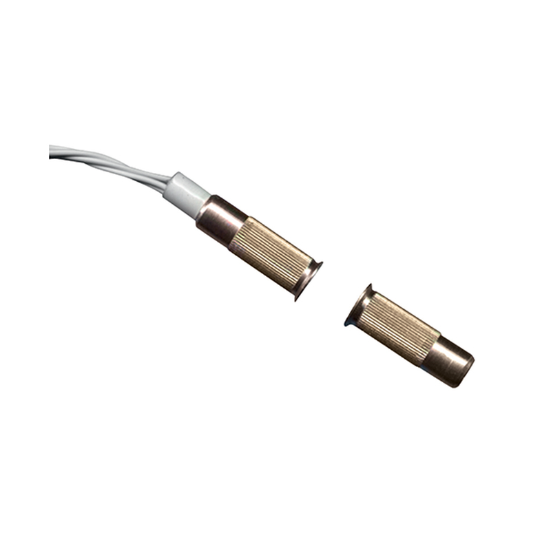 Contatto magnetico di media portata omologato IMQ 1 livello. Contatto N.C. con anta chiusa. Studiato per l’installazione su serramenti non ferrosi.Contenitore in ottone con parte terminale zigrinata per un fissaggio stabile nel profilo del serramento. Diametro foro di fissaggio 8mm. Collegamento con 4 fili di uscita di lunghezza 30cm. Venduto in confezione da 10 pezzi. Prezzo riferito al singolo pezzo.