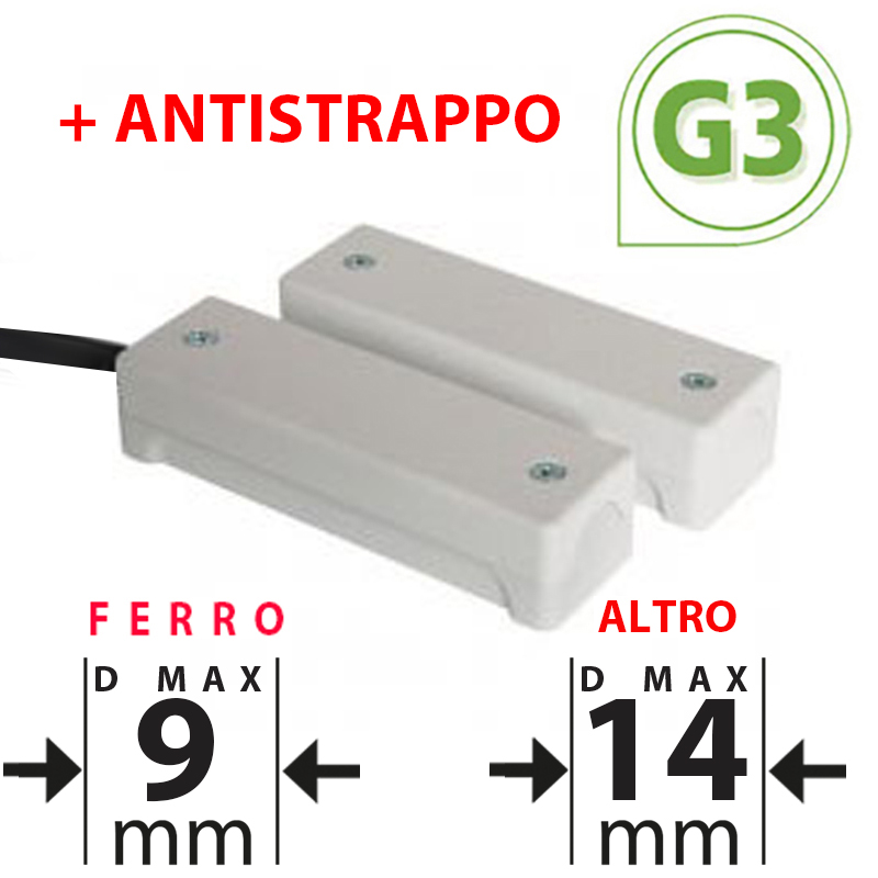 Contatto magnetico ad elevato grado di sicurezza per interni ed esterni con montaggio a vista. Distanza massima di lavoro 14mm no ferro, 9mm ferro. Il design discreto e gradevole del contenitore metallico assicura praticità di installazione e robustezza. La serie 1000N è adatta per installazioni in banche, centri commerciali ed edifici pubblici. I circuiti magnetici interni sono realizzati per ottenere un triplo bilanciamento magnetico assicurando maggiore protezione contro i più svariati tentativi di effrazione meccanica, elettrica e magnetica. Non necessita di scatole di derivazione in quanto le connessioni vengono effettuate all’interno mediante morsetti. Dotato di tamper contro l’apertura del coperchio. L’alloggio del dado di fissaggio all’interno del contenitore è predisposto per accettare pressacavi o pressatubi da 16mm fino a 10mm di diametro. E’ dotato di protezione antistrappo tramite microinterruttore sia sulla parte reed che sulla parte magnetica. Funzionamento con contatti reed uscita NC con magnete vicino. Connessione a morsetti 1,5mmq. Dimensioni LxHxP 125x38x27,5mm. Dotazione: dime fissaggio, pressacavo IP65