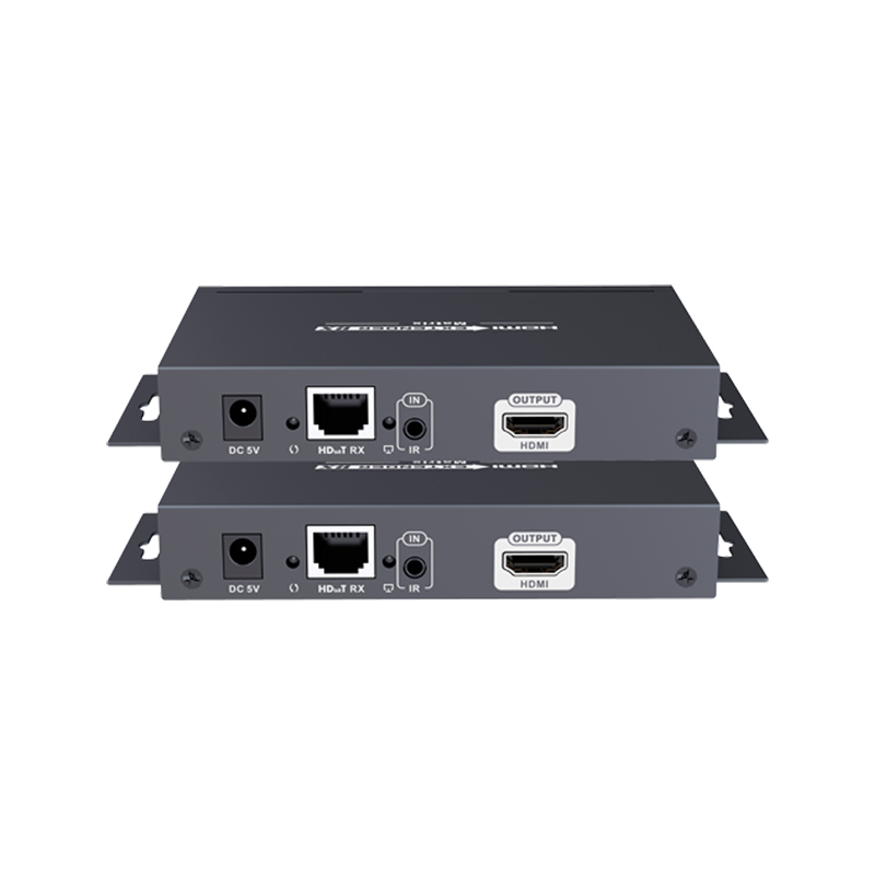 Sistema base composto da TX e RX. Possibilità di collegamento punto – punto, oppure punto – multi punto tramite switch. Distanza di lavoro 120m con CAT6, 100m con CAT5E, 80m con CAT5. Connessione di rete. Fino a 100 emettitori e ricevitori illimitati. Fino a 1080p 60 Hz (entrata e uscita). Supporta il controllo IR remoto di dispositivi. Consente il controllo remoto. Controllo tramite APP per PC. Alimentazione: DC 5V / 2A. Dimensioni / Peso: 23.8 (L) x 133.8 (H) x 83.8 (P) mm / 260g.