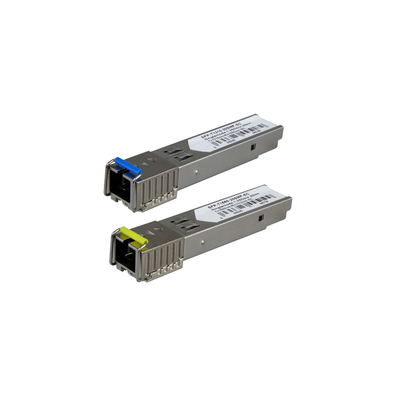 Coppia di moduli trasmettitori SFP Tx 1550/1310 nm Rx 1310/1550 nm, fibra monomodale. Connettore SC Simplex – BiDi, massimo 20 km 1.25Gb/s – 1000Base-LX.
