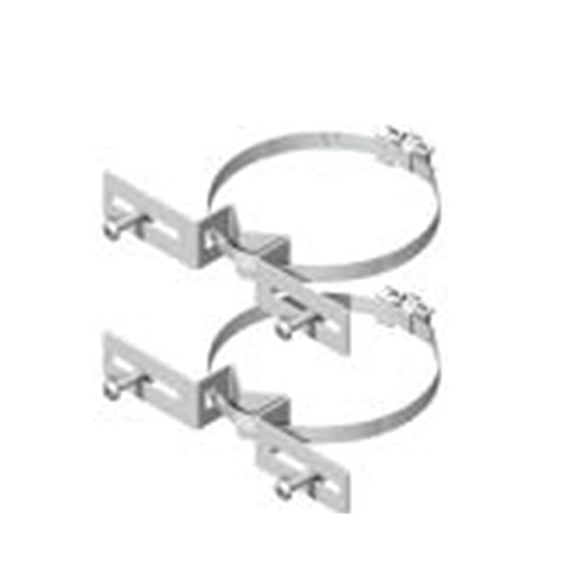 Sistema di fissaggio 150×25 mm interassi di fissaggio 62 ÷ 136 mm – per pali ø 50 ÷ 90 mm – inox aisi 430 – tenditore zincato – con fascette