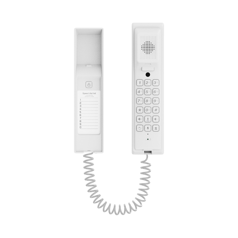 Cornetta per videocitofono, LED di stato e tasti funzione. Audio bidirezionale Crystal Clear, TCP/IP, PoE, SIP standard. Manutenzione tramite Cloud. Connessione dei dispositivi tramite Cloud. Alimentazione: DC 12 V / 600 mA max. PoE standard (IEEE802.3af). Dimensioni: 216 (H) x 63 (I) x 53 (P) mm. Colore BIANCO.