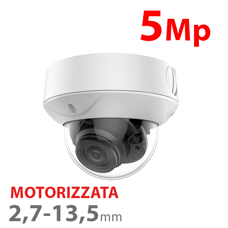 Telecamera dome Safire Gamma PRO, 4 in 1, 5 Mp high performance CMOS, lente motorizzata 2.7~13.5 mm, Smart IR Matrix, portata 40 m, impermeabile IP67, antivandalo IK10. Alimentazione: DC 12 V / 360 mA, 4.3 w max. Dimensioni: 111,3 (H) x 145 (Ø) mm. Diametro della base: 130 (Ø) mm. Corpo in metallo. Compatibile con: DS-1280ZJ-DM45 junction box; DS-1275ZJ staffa per palo; DS-1273ZJ-140-DM45 staffa a parete; DS-1276ZJ staffa ad angolo; DS-1281ZJ-DM45 staffa a soffitto inclinato; DS-1271ZJ-140-DM45 staffa a tetto; DS-1253ZJ-L box protettore.
