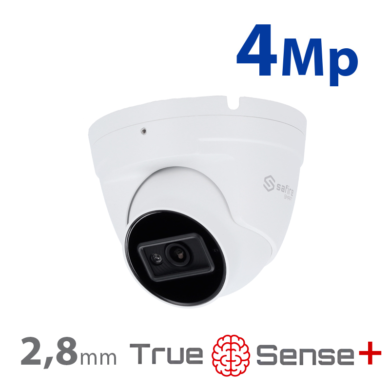 Telecamera Turret IP SAFIRE SMART gamma I1, 4 Mp (25922×1520). Ottica 2.8 mm | Audio & Allarmi | IR 30m. TrueSense+: Classificazione di persone, veicoli e veicoli non motorizzati. Rilevamento del volto e acquisizione del volto. Conteggio di persone e veicoli. Identificazione persone e veicoli. Waterproof IP67. Microfono integrato. Scheda microSD fino a 256GB. Alimentazione: DC 12 V / 460 mA / 6.5 W máx. / PoE IEEE802.3af. Dimensioni: 94.6 (Φ) x 82.80 (H) mm. Corpo in metallo. Compatibile con: SF-JBOX-0302, SF-JBOX-0106 junction box; SF-WALLBRACKET-0203 staffa da parete.