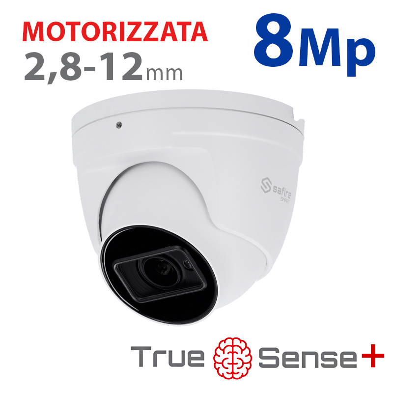 Dome IP SAFIRE SMART gamma I2 Risoluzione 8 Mp (3840×2160). Obiettivo motorizzato 2,8-12 mm. Audio, IR 50 metri. IA avanzata: metadati video e rilevamento facciale. Impermeabilizzazione IP67 | PoE (IEEE802.3af). Alimentazione: DC 12 V / 875 mA / 10.5W max. PoE IEEE802.3af. Dimensioni: 130.7 (Ø) x 109.3 (H) mm. Compatibile con: SF-JBOX-0106, SF-JBOX-0303, junction box; SF-WALLBRACKET-0204 staffa da parete.