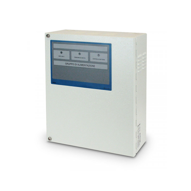 C10SW è un gruppo di alimentazione in contenitore metallico per applicazioni in ambito antintrusione e controllo accessi. contiene un alimentatore da rete AL3SWJST di tipo switching da 13,8Vcc/3A ed è dotato di una sofisticata circuitazione di controllo per alimentazione di apparati in campo e ricarica di sirene autoalimentate compatibili.Il pannello frontale presenta 3 LED di segnalazione per controllo batteria (colore rosso), tensione di uscita (colore verde) e presenza di rete (colore verde). Presenta uscite a relè per GUASTO ALIMENTAZIONE PRIMARIA, GUASTO BATTERIA e un’uscita TAMPER. È possibile allocare una batteria da 12V/7Ah mod. B712G o da 12V/18Ah B1812G Il contenitore metallico di ridotte dimensioni è dotato di protezione tamper contro l’apertura mentre per la protezione contro lo strappo dal muro è necessario il kit opzionale MSW. C10SW è conforme alla norma EN 50131-6 livello 1 e 2 e classe ambientale II.