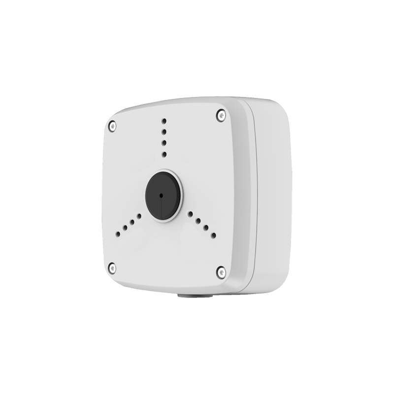 Junction box per telecamere bullet o dome, per esterni. Installazione a tetto o parete colore bianco, pin cavo. Corpo in alluminio. Dimensioni: 134 (H) x 134 (L) x 55 (P) mm.