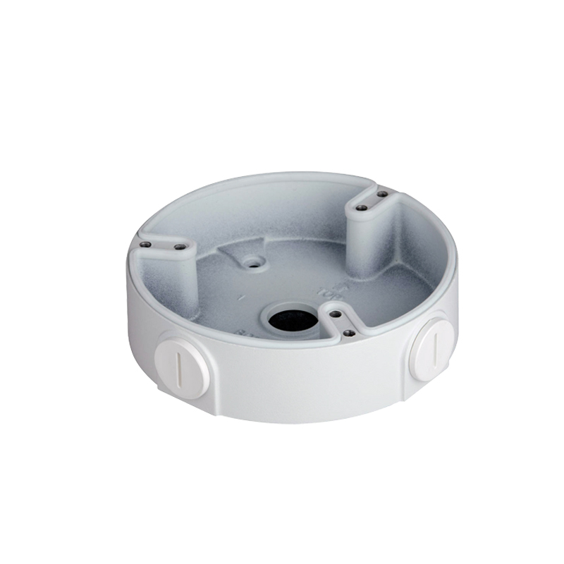 Junction box per telecamere dome, per esterni. Installazione a tetto o parete. Colore bianco, pin cavo. Corpo in lega di alluminio. Dimensioni: 34 (H) x 122 (Ø) mm.