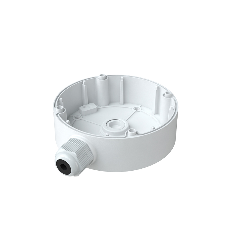 Junction box per telecamere dome SAFIRE SMART colore bianco. Adatto per uso esterno IP65. Dimensioni: 39 (H) x 117,9 (Ø) x 143,3 (P) mm. Corpo in lega di alluminio.