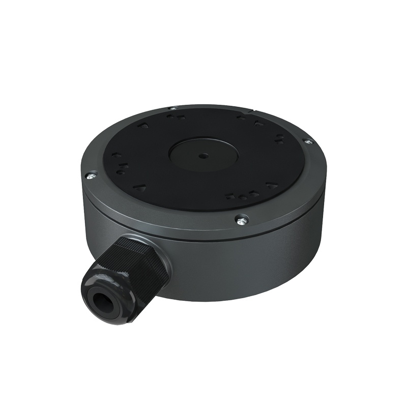 Junction box per telecamere dome SAFIRE SMART colore grigio. Installazione a tetto o parete. Dimensioni: 50 (H) x 139.3 (Ø) x 171.6 (P) mm. Corpo in lega di alluminio.