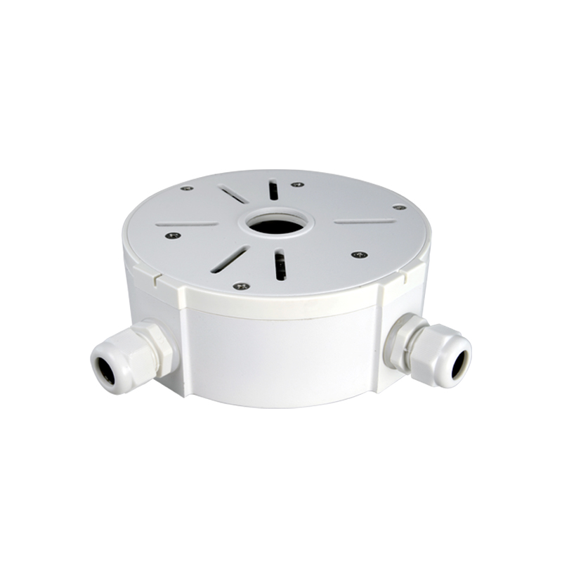 Junction box ROTONDA, UNIVERSALE metallo bianco per telecamere bullet o dome. Per esterni, installazione a tetto o parete, cavo Pin / fori multipli.