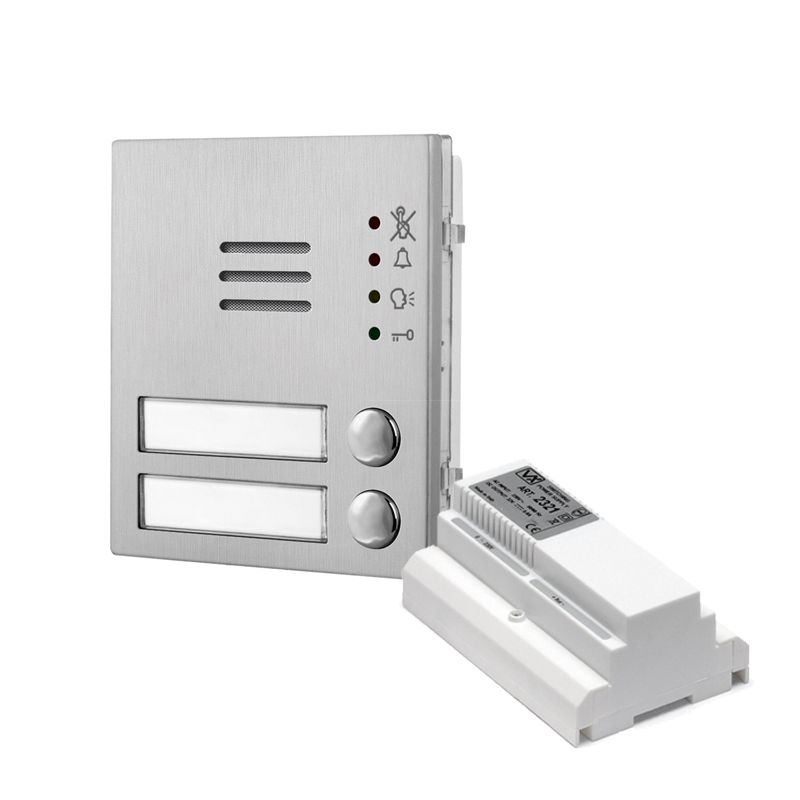 Kit citofonico base impianto a 2 pulsanti per sistema VX2300 composto da: 1 pz. cod. 4304X-2/M, 1 pz. cod. 2321.