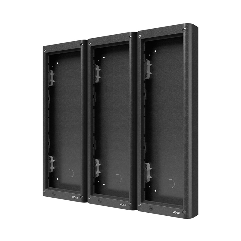 Kit installazione da parete serie 4000, colore grigio canna di fucile, 9 moduli. Montaggio superficie. Sporgenza (mm) 44, Dimensioni (mm) 405x400x44. Colonne 3. Finitura cornice grigio canna di fucile metallizzato goffrato.