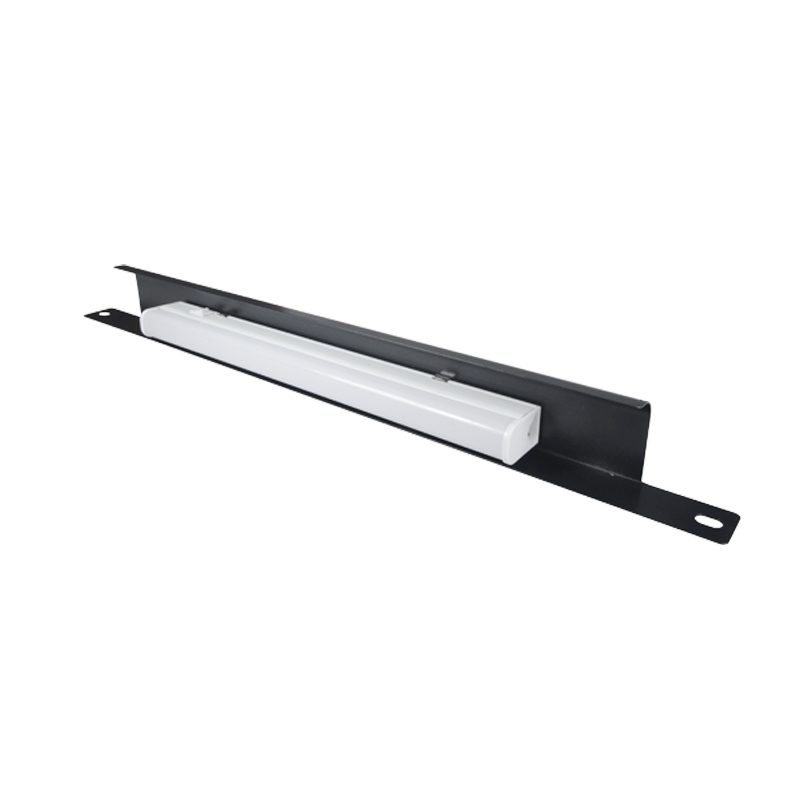 Lampada per rack standard 19”, facile installazione. Alimentazione tramite connettore tipo F.