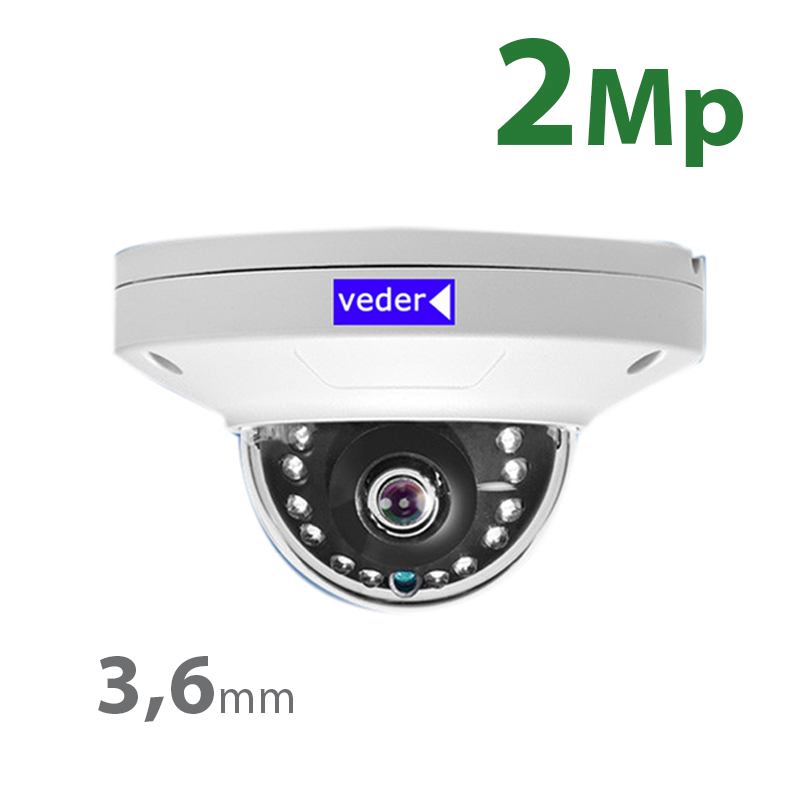 Mini Dome IP. CMOS 2Mp. Main stream: 1080p/720p@30fps, sub stream: VGA/360p@30fps. Bitrate 32Kbps – 6Mbps, VBR/CBR. D/N meccanico. Ottica FISSA 3,6mm. 12 Led IR 10-15m. Funzioni AWB, AGC, BLC, 3DNR, D-WDR. Standard video H264. App Danale per IOS/Android. Protocollo HTTP/RTSP/FTP/NFS/SMTP/DHCP/NTP e P2P, compatibile ONVIF 2,4. Custodia in metallo IP66. Temperatura di lavoro -30°…+60°C. Dimensioni øxP 170x70mm. Peso 370g. Alimentazione 12Vcc/POE 5W.