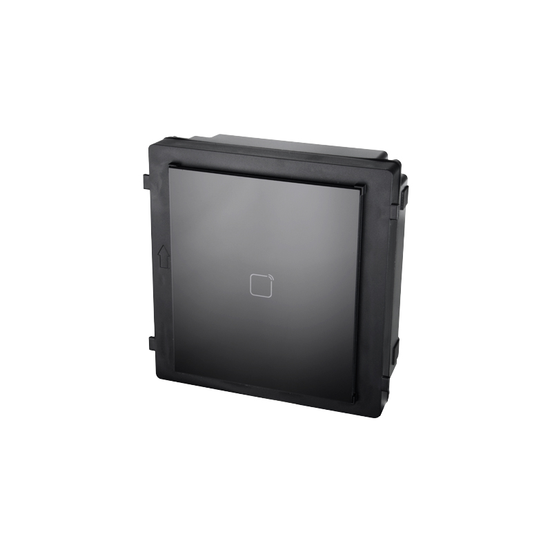 Modulo di estensione per videocitofono. Apertura con carte RFID. Frequenza EM 125 KHz. LED di stato. Adatto per esterni IP65. Montaggio modulare. Alimentazione: Attraverso 4 fili tra piastre modulari. Dimensioni: 98 x 100 x 33 mm. Compatibile con: SF-VIMOD-BS2, SF-VIMOD-BF1, SF-VIMOD-BF2, SF-VIMOD-BF3 Supporto di superficie per videocitofono, SF-ACREADER-CARD Lettore di schede USB.