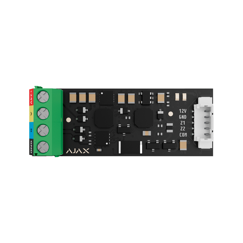 Modulo di integrazione di dispositivi di terze parti. Protocollo Fibra. Certificato di grado 3, 2 ingressi cablati. Allarme configurabile NC, NO, EOL, 2EOL, 3EOL. Uscita di alimentazione 12 V / 50 mA. Dimensioni: 15 (H) x 40 (L) x 12,2 (P) mm. Lunghezza del cavo fino a 3 metri.