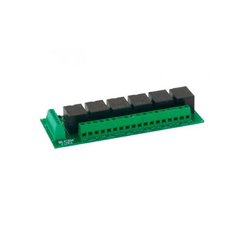 Modulo per trasformazione sei porte logiche di uscita in uscite a relè su serie INFINITE – Relè di potenza con portate 10A a 230Vca (cod.CSI004017).