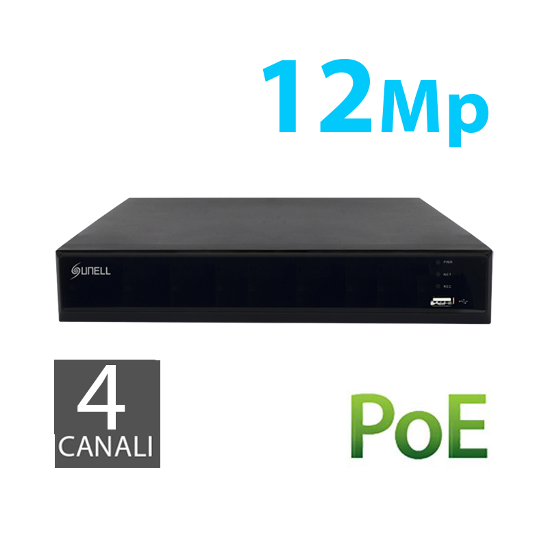 NVR 4 canali POE 40Mbps, 1ch 12MP/4ch 8MP@30fps, allarmi 4/1, PoE 4ch 100Mbps, IEEE802.3af, Alimentazione: DC48V/1.25A. Consumo: < 5W (senza HDD). 1 HD da max 10 TB. Dimensioni: 255×235×47,5mm