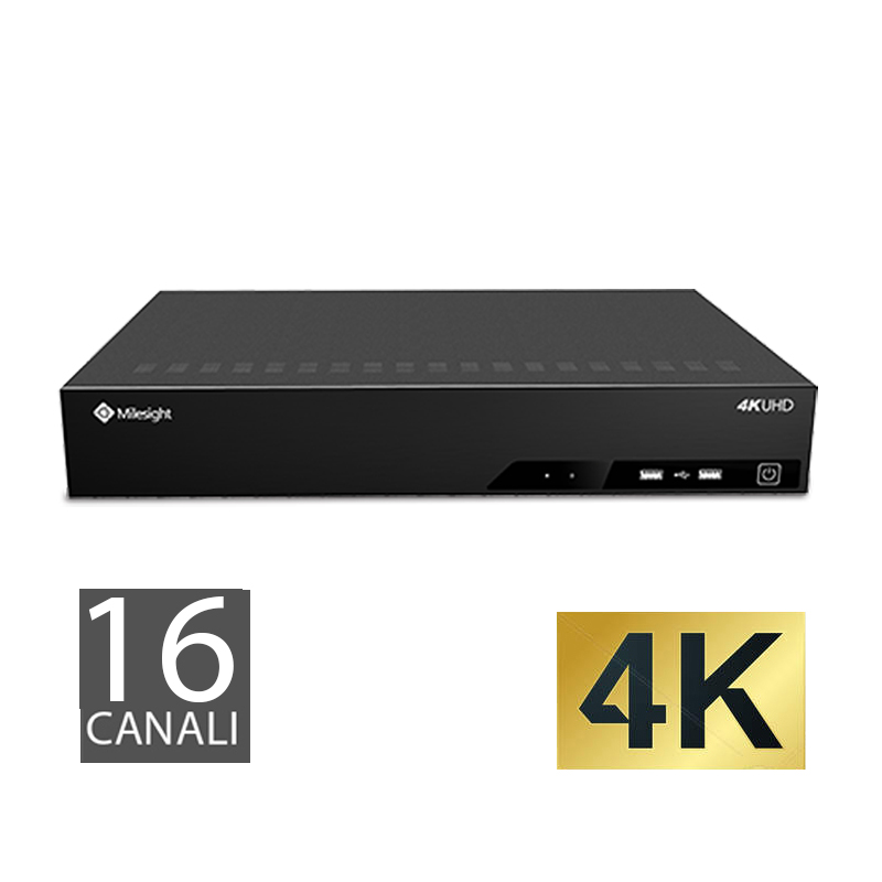 NVR 16 canali pro 7000 series, 160Mbps, 4K, H.265, HDD 4x10Tb. Alimentazione: AC100V~240V50Hz~60Hz. Dimensioni: 440mm (W) X 320 mm (D) X 66.8mm(H).