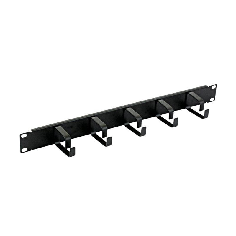 Pannello guidacavi 19″ 1U nero con 4 anelli metallici con fori centrali e spazzole