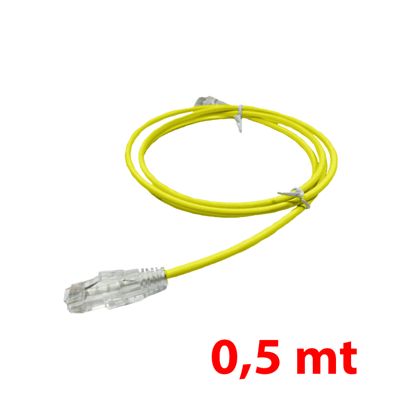 Patch Cat. 6, UTP SD, 28AWG colore giallo, L. 0,5mt diam. 3,5mm