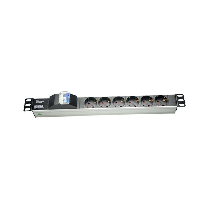 Presa di corrente multipla 6 uscite fino a 250VAC / 16 A max. Dimensione 1U per facilitare l’installazione, interruttore automatico di sicurezza, colore nero.
