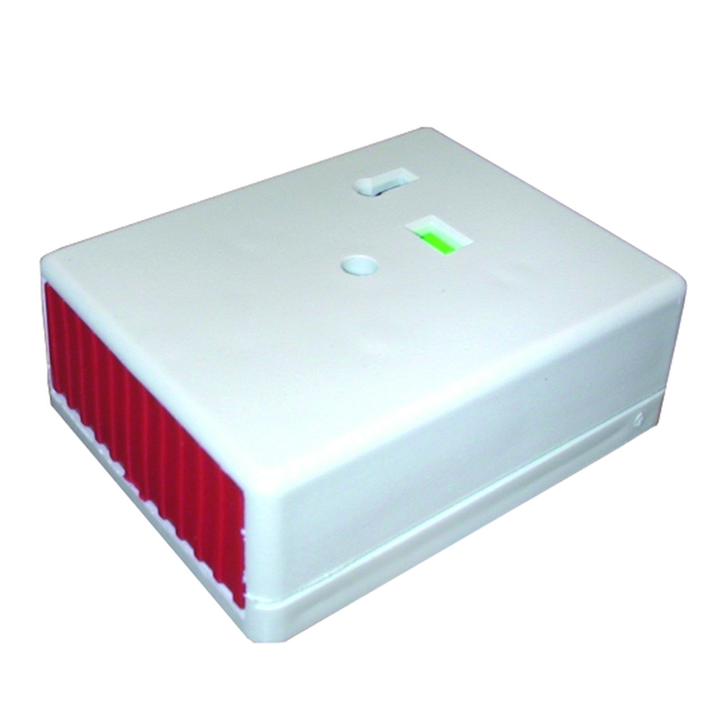 Pulsante antirapina verticale con ripristino a chiave. Memoria di allarme. Scatto silenziato. Da utilizzare per l’attivazione di allarmi antirapina tramite combinatori telefonici e altri sistemi di sorveglianza. Tenperatura di lavoro -10…+40°C. Dimensioni LxHxP 91x63x29mm.