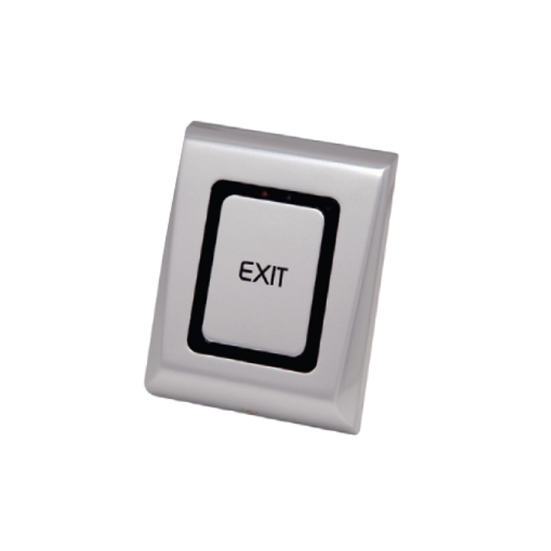 Pulsante capacitivo luminoso antivandalo con simbolo exit. Elettronica resinata. Retroilluminazione (rossa/verde per segnalazione avvenuto consenso). Consumo: 65mA max. Alimentazione 12/24 V dc – 15/24 V ac. Grado di protezione IP66. Dimensioni: 86x116x22mm.